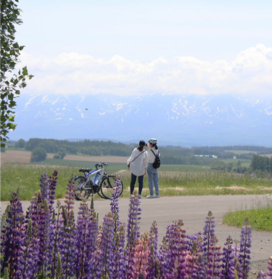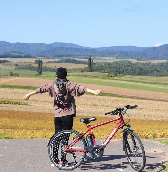 We will show you this beautiful hilly terrain with some layers and the majestic Tokachidake mountain range. And this stunning hill landscape is created by local agriculture. All our bikes are YAMAHA e-bikes. This allows you to easily enjoy the hilly roads of Biei. It’s not difficult to ride that is almost same as a normal bike. Not only visiting some famous tourist spots, local guide will take you to quiet and beautiful places.