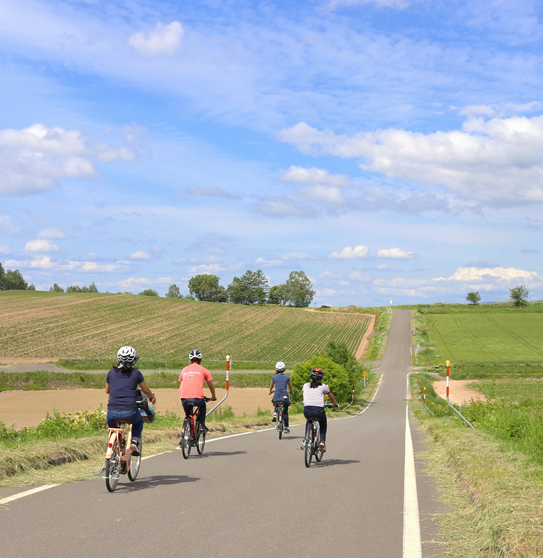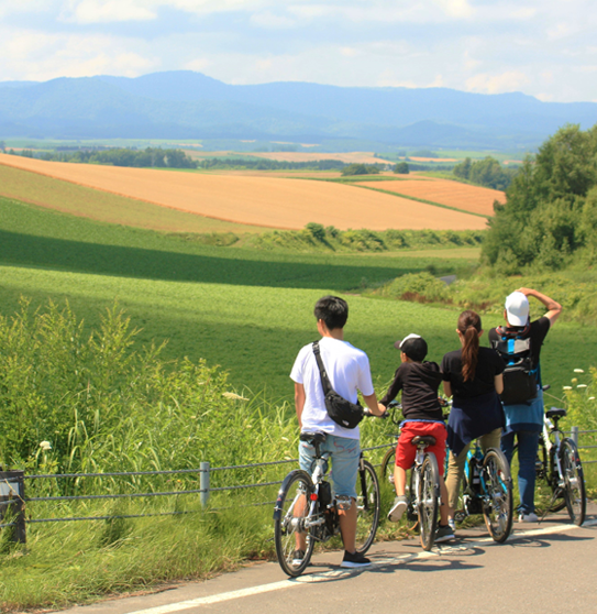 It’s not bad to see the view from car/bus but scenery from a bicycle is more fresh and impressive. Biking allows you to enjoy the scenery at a slower pace with your family or friends. Riding slowly on the bike will give us new discoveries. And bicycle can stop anytime/anywhere that a car can’t. It does not interfere with other cars or agricultural work. The breeze you can feel while cycling is very refreshing and comfortable. The smell of fields and soil. The sounds of the wind and birds singing. You can feel the nature of Hokkaido and will be at one with nature.